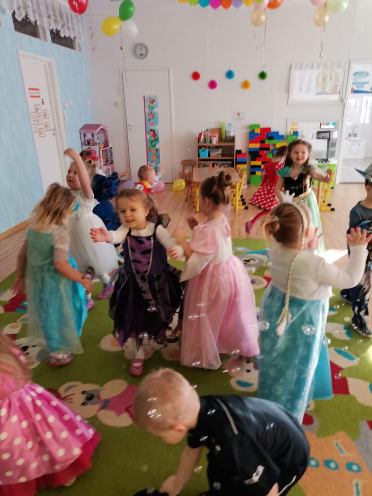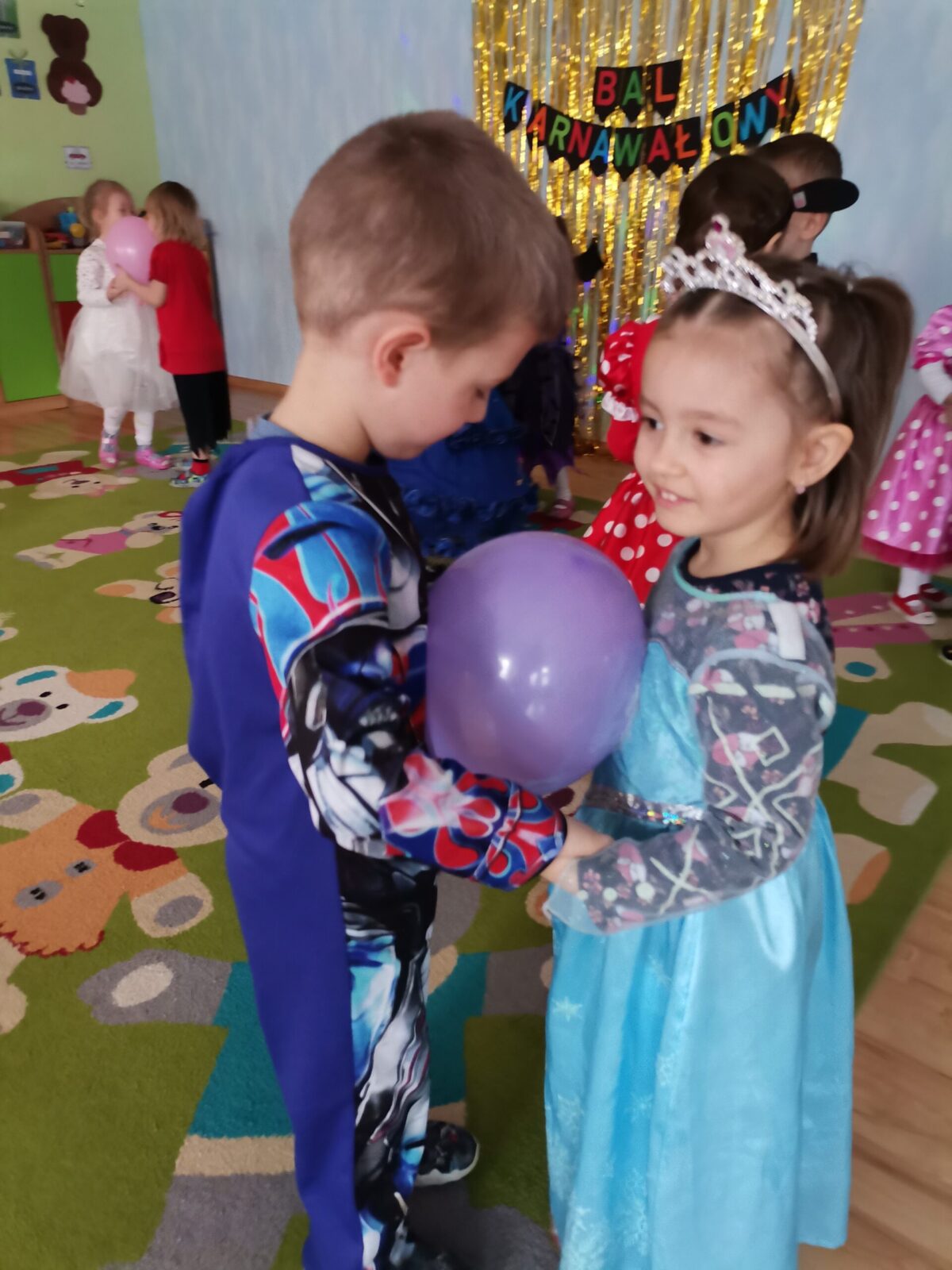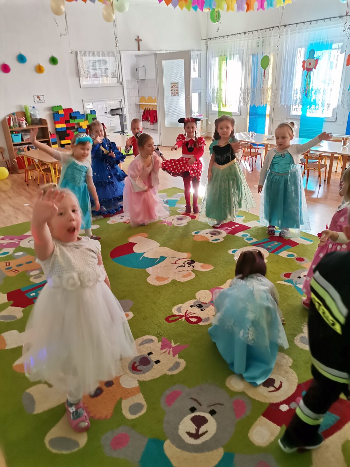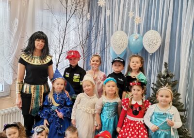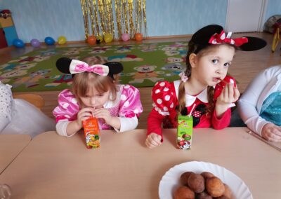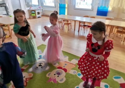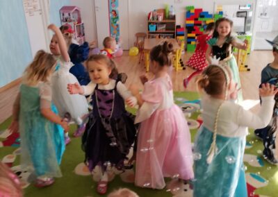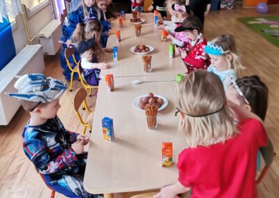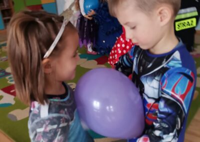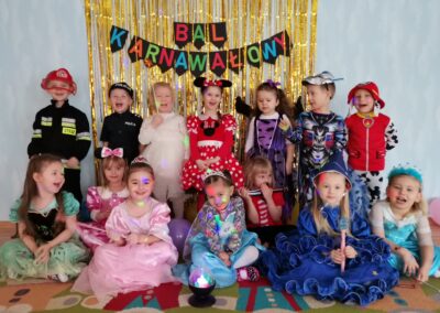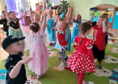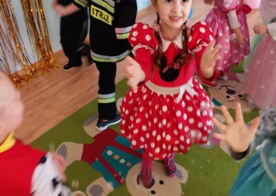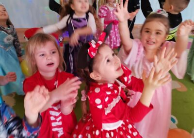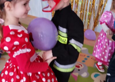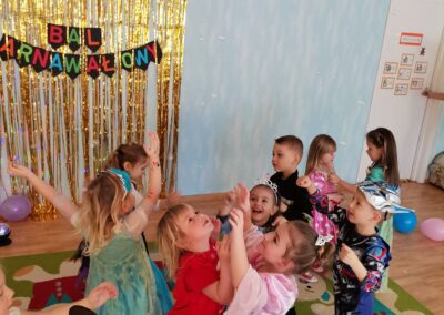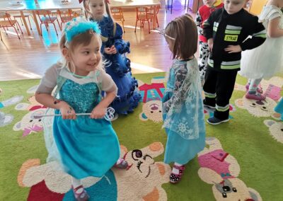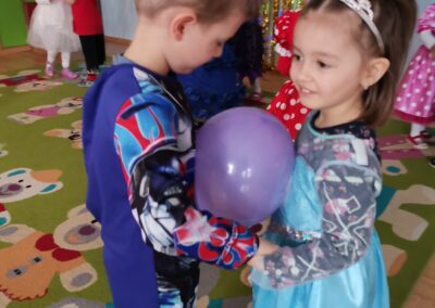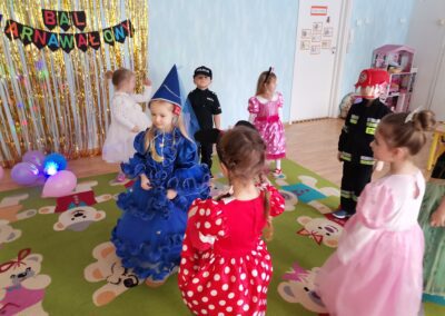 W piątek 5.02.2021r. w grupie Misie odbył się bał karnawałowy. Sala była udekorowana balonami i serpentynami. Również dzieci ubrane były w stroje nawiązujące do bajek, m. in. na baalu bawiły się księżniczki, kowboje, biedronki, piraci czy policjanci. Dzieci bawiły się przy wesołej muzyce przelatanej licznymi konkursami i zabawami. Mogły również odpocząć i porozmawiać przy poczęstunku. Na zakończenie wszystkie dzieci otrzymały prezenty. Wszyscy świetnie się bawili i już nie mogą doczekać się kolejnego balu za rok.