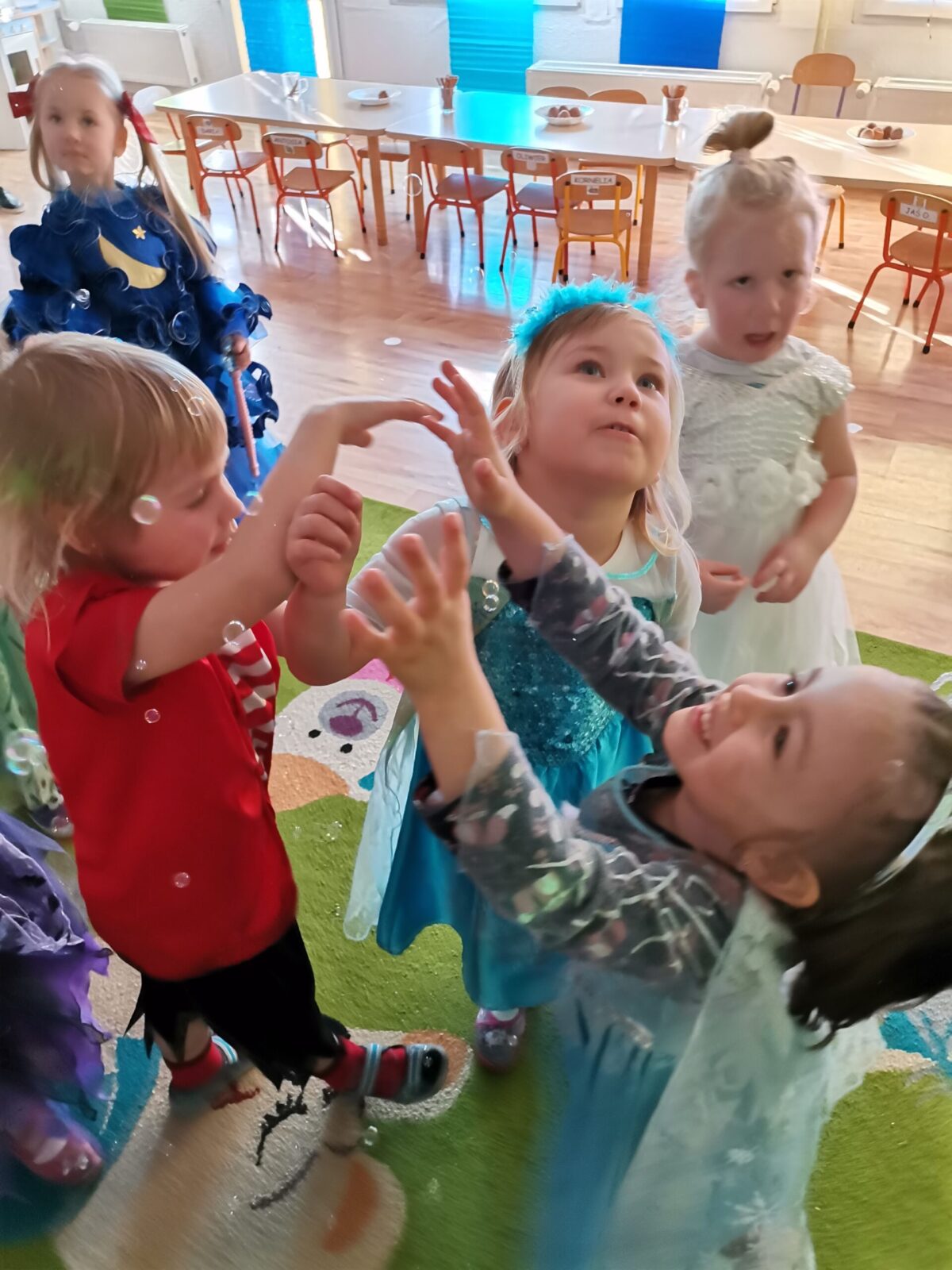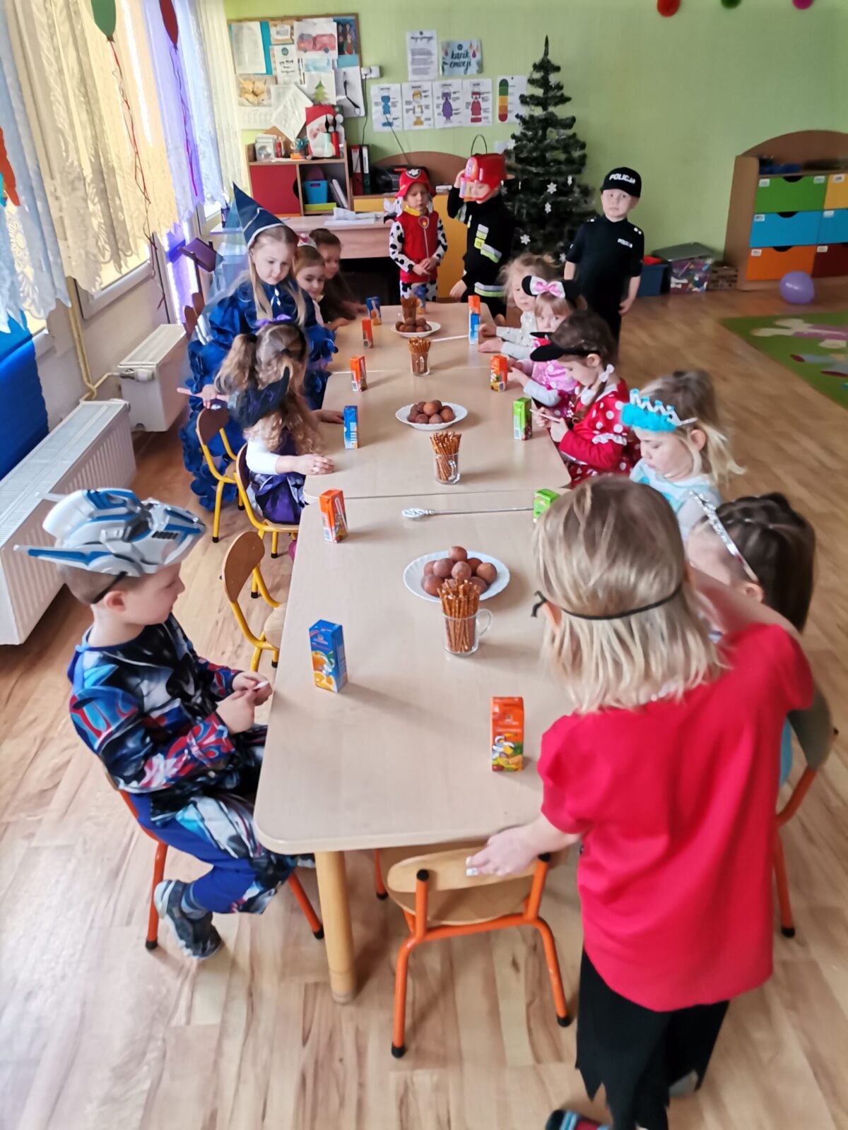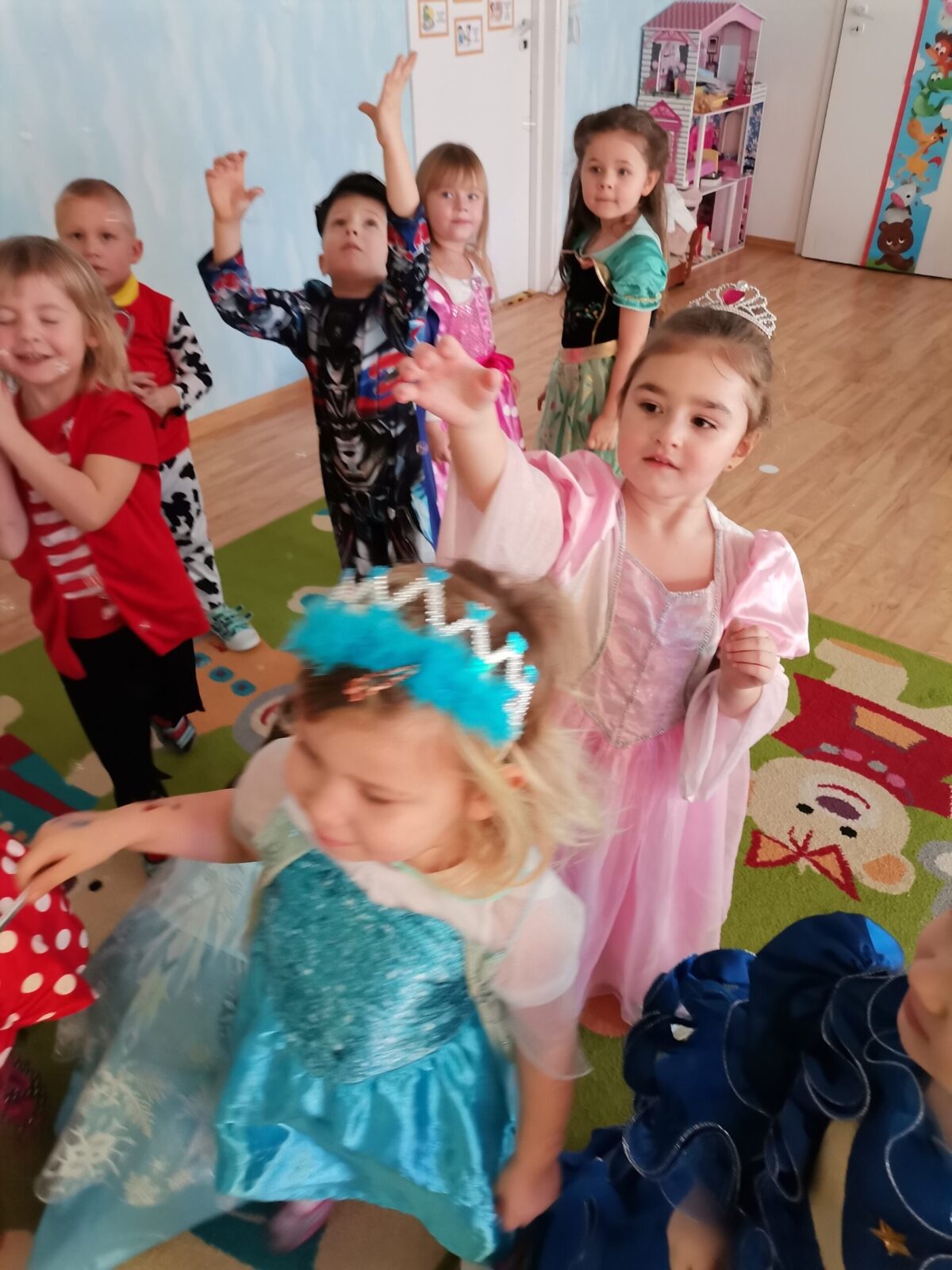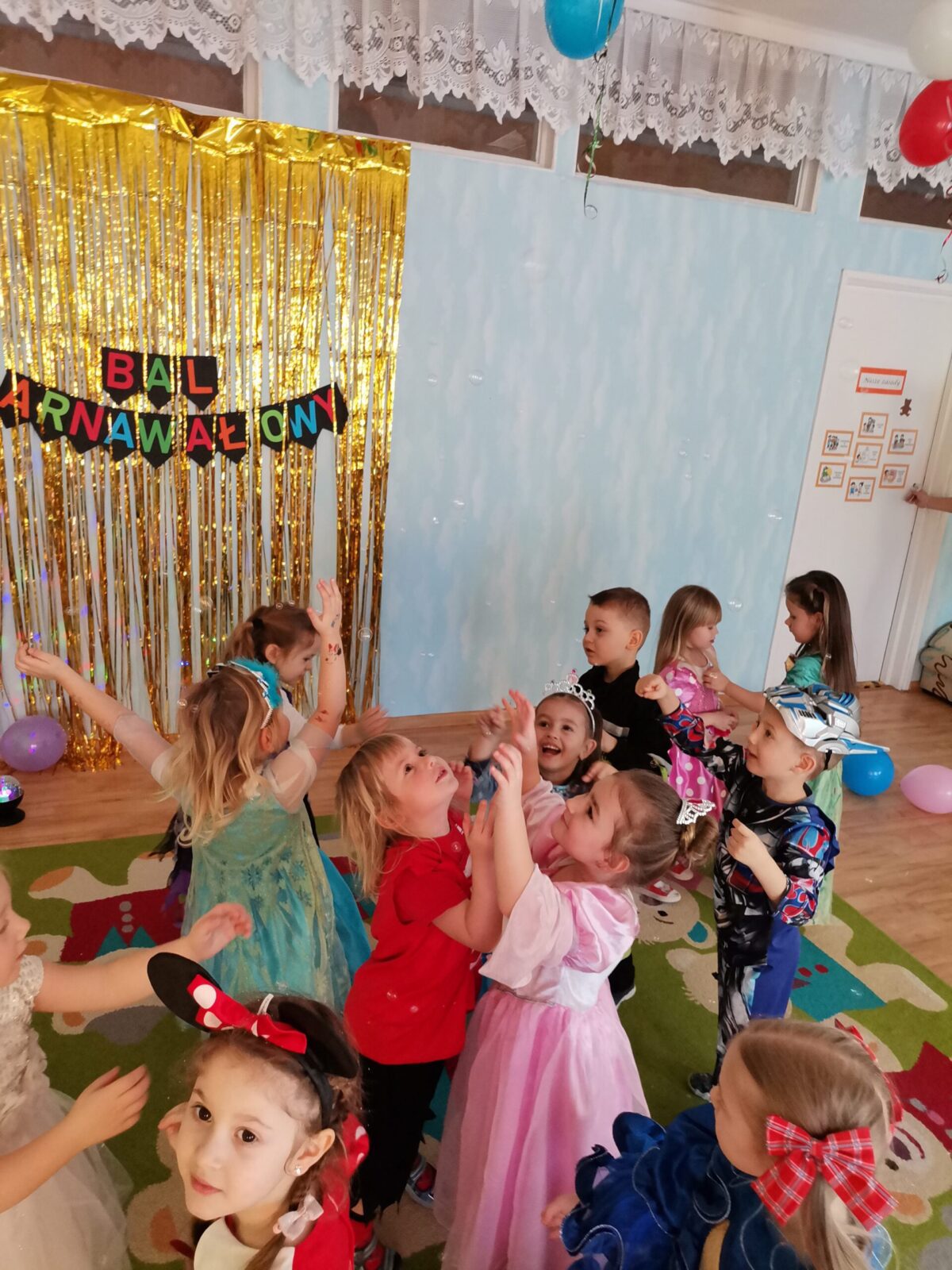 W piątek 5.02.2021r. w grupie Misie odbył się bał karnawałowy. Sala była udekorowana balonami i serpentynami. Również dzieci ubrane były w stroje nawiązujące do bajek, m. in. na baalu bawiły się księżniczki, kowboje, biedronki, piraci czy policjanci. Dzieci bawiły się przy wesołej muzyce przelatanej licznymi konkursami i zabawami. Mogły również odpocząć i porozmawiać przy poczęstunku. Na zakończenie wszystkie dzieci otrzymały prezenty. Wszyscy świetnie się bawili i już nie mogą doczekać się kolejnego balu za rok.