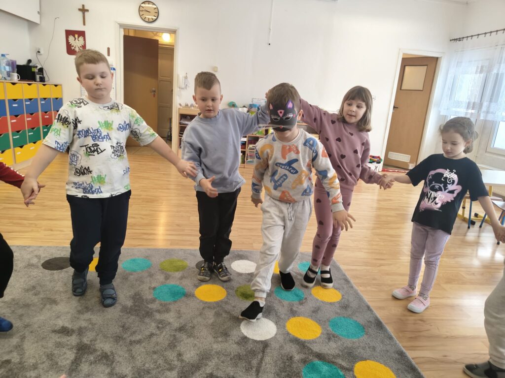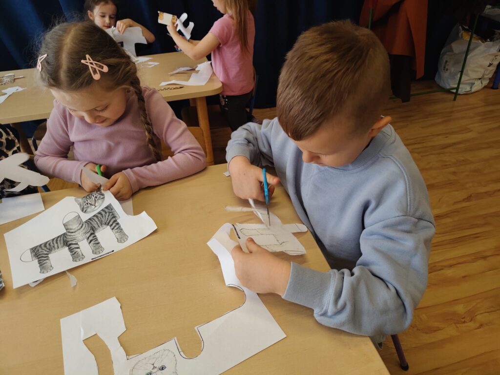 Przedszkolaki poznały różne gatunki kotów – zarówno koty domowe, jak i dzikie, takie jak lew, tygrys czy ryś. Wysłuchały ciekawostek dotyczących życia kotów, ich zwyczajów, sposobu poruszania się, odżywiania oraz opieki nad małymi kociętami.Nie zabrakło również wesołych zabaw ruchowych i tematycznych związanych z kocimi bohaterami bajek, które sprawiły przedszkolakom wiele radości. Dzieci chętnie dzieliły się także swoimi doświadczeniami i opowiadały o swoich domowych pupilach.To był dzień pełen uśmiechu, nauki i świetnej zabawy! 🐾