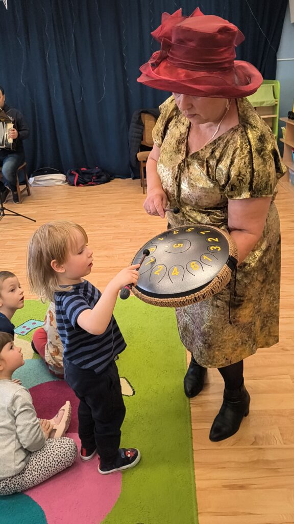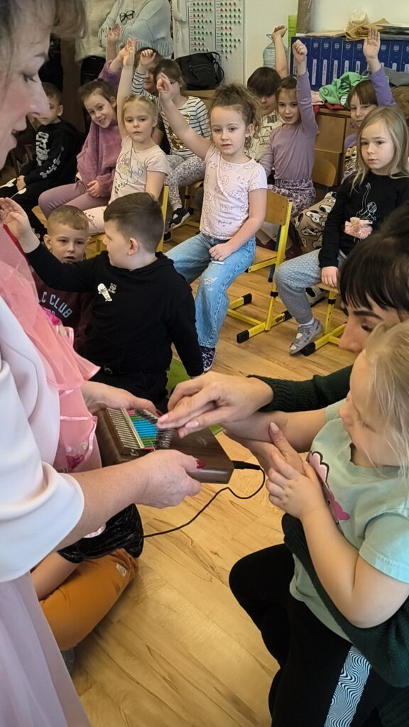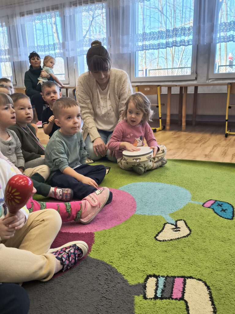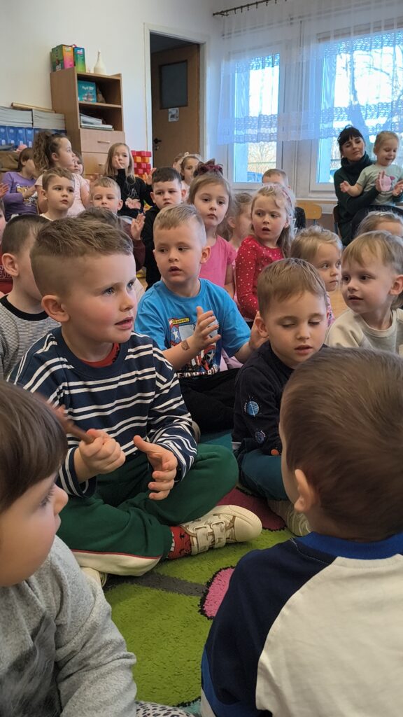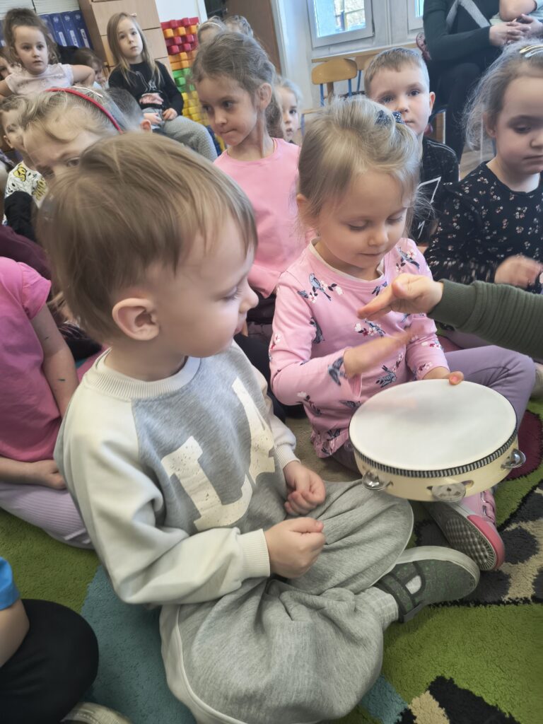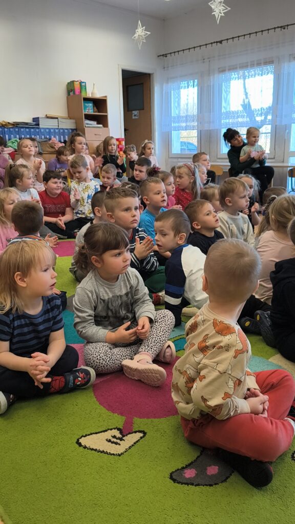 W naszym przedszkolu cyklicznie pojawiają się artyści, którzy poprzez spektakle lub koncerty wprowadzają dzieci w świat sztuki. W dniu dzisiejszym dzieci przeniosły się do krainy muzyki, a to za sprawą bajki muzycznej pt. „O Malince i jej wycieczce”. Udział w koncercie niewątpliwie dał dzieciom nowe możliwości odkrywania świata dźwięków. Przedszkolaki śpiewały, wyklaskiwały rytmy, ilustrowały muzykę ruchem, jak również grały na różnorodnych instrumentach, np. kalimba, bęben językowy czy akordeon. Dodatkowo dzieci utrwaliły wiadomości na temat zasad ruchu drogowego oraz powtórzyły numery alarmowe: 999, 998, 997.