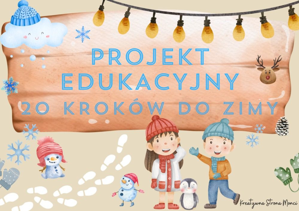 „20 kroków do zimy” – projekt edukacyjny, który ma na celu przybliżenie dzieciom sezonowych zmian w przyrodzie, tradycji i zwyczajów związanych z zimą oraz przygotowanie do zimowych warunków.