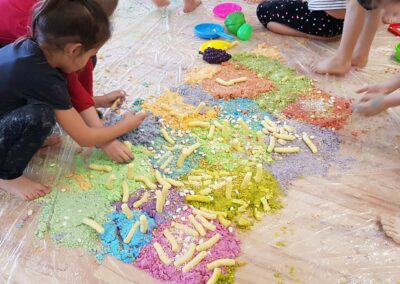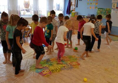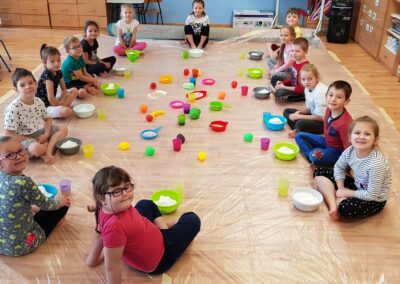 Zajęcia realizowane są w ramach innowacji pedagogicznej pt. „Kreatywne pomysły na zmysły” – sensoplastyka(R) elementy, przez mgr Ewę Bieżuńską – Nachman oraz Wiolettę Pietroń oraz odbywają się raz w miesiącu.