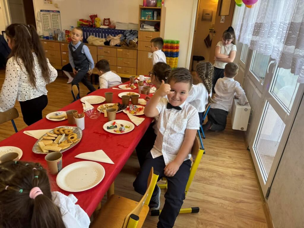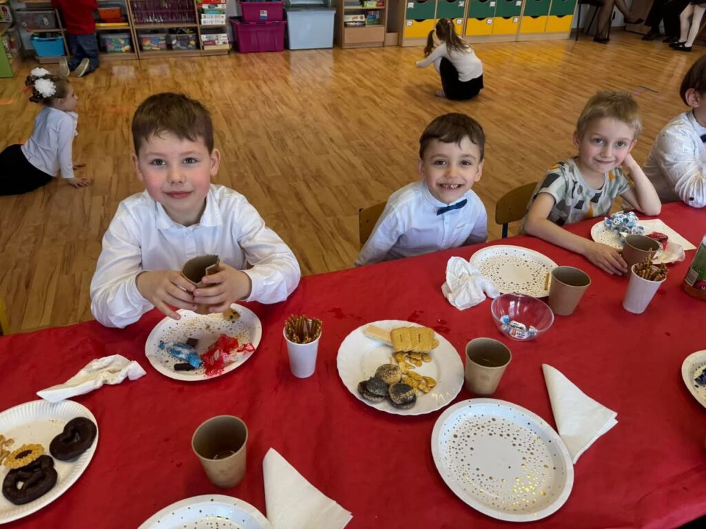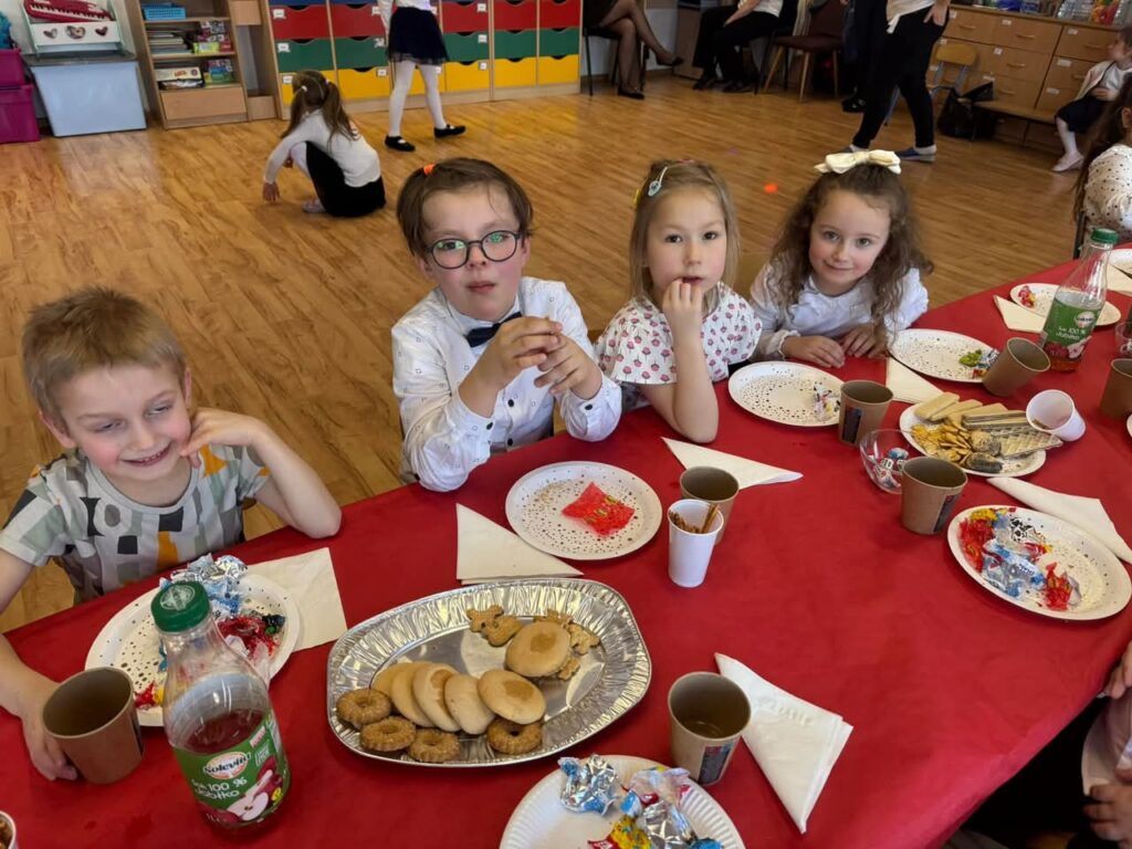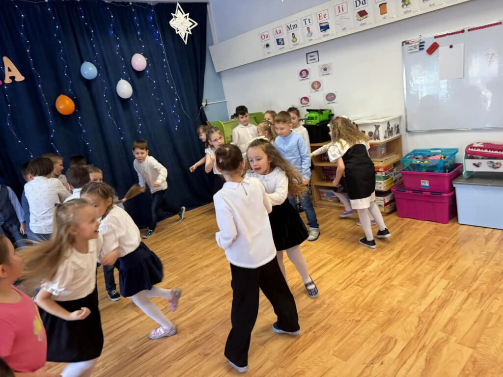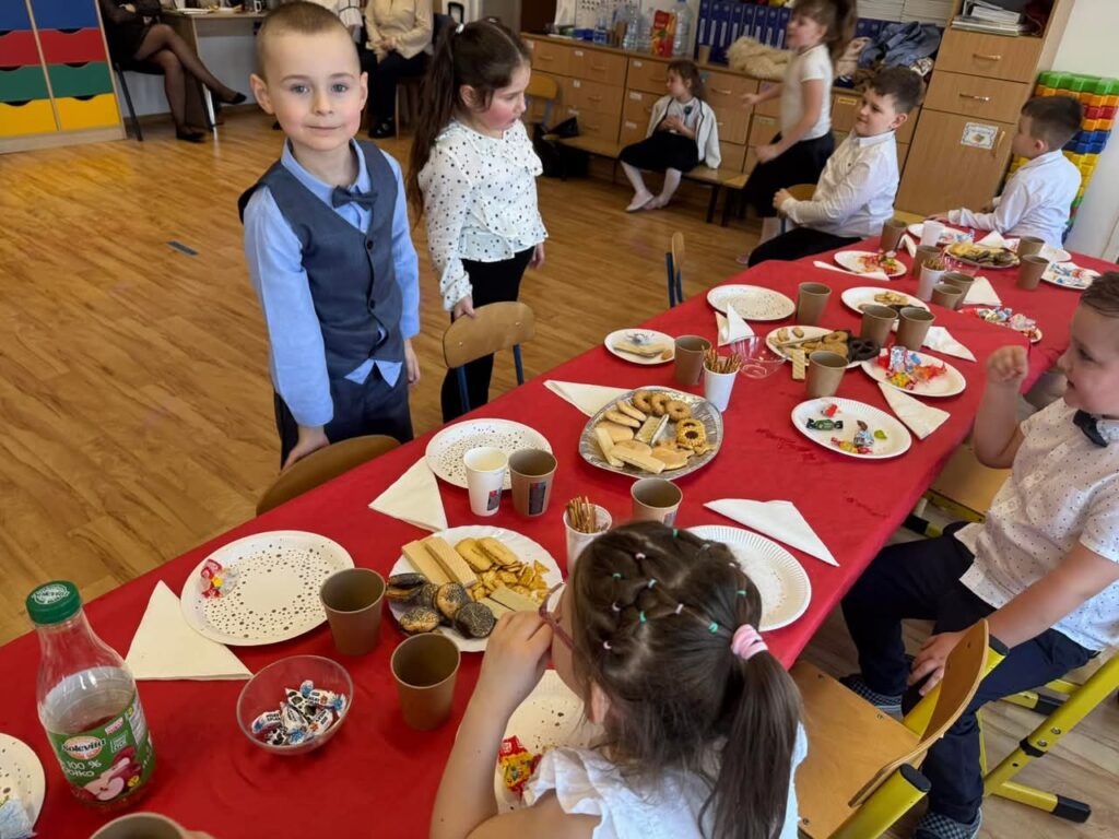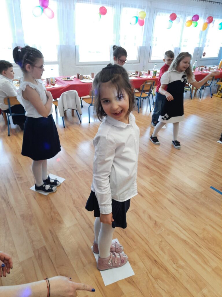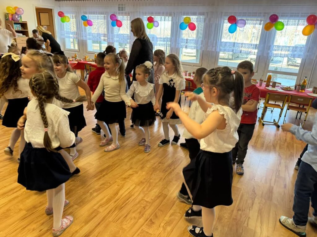 Wszystkie 6 latki rozpoczęły wspólną zabawę od zatańczenia poloneza. Następnie Pani Dyrektor pogratulowała i przekazała wiele wskazówek na dalszą drogę edukacji. Po ceremonii głównej nastąpiła wesoła zabawa przeplatana wieloma konkursami.