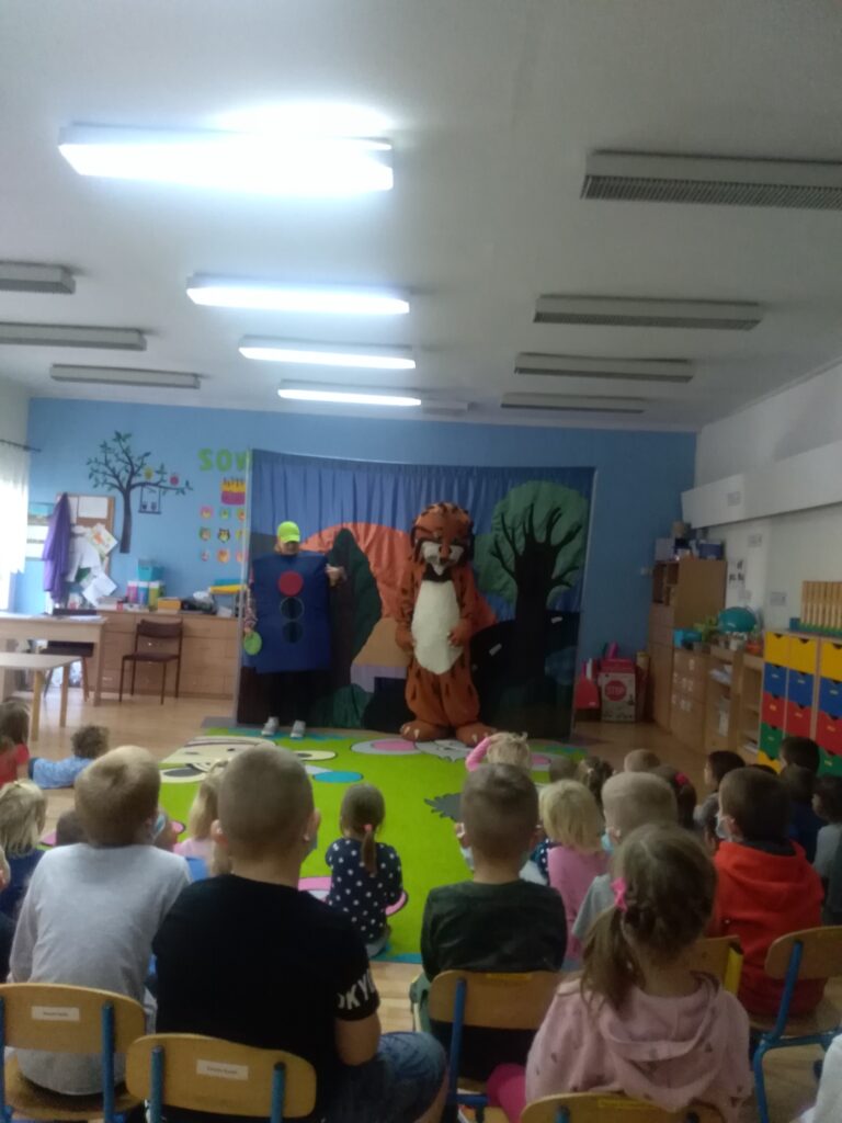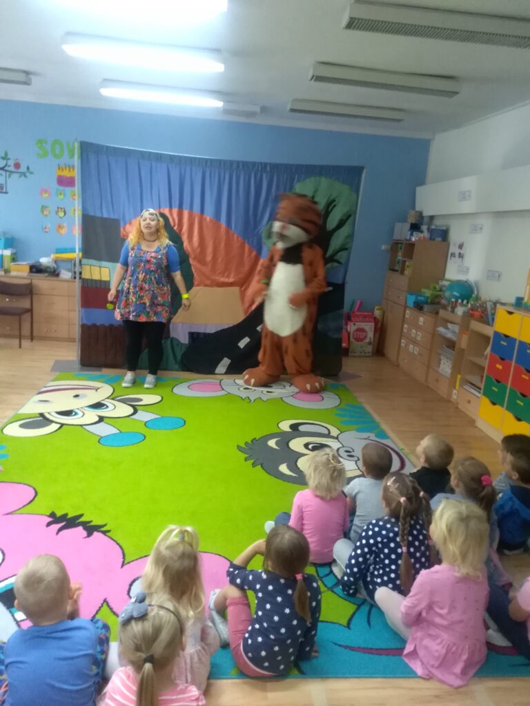Dnia 25.09.2020r.dzieci miały okazję obejrzeć teatrzyk pt: ,,O Rysiu Ryszardzie Chronickim, który dzieci chronił” w wykonaniu aktorów z Krakowa. Jak sam tytuł wskazuje bohaterem był Ryszard Chronicki wesoły ryś i jego koleżanka Zuzia. Aktorzy w zabawny sposób zwrócili uwagę na szereg problemów z jakimi mogą się spotkać dzieci w codziennym życiu. W przedstawieniu pojawiły się elementy tematyki bezpieczeństwa ruchu drogowego, podstawowa wiedza na temat zasad udzielania pierwszej pomocy oraz jak się zachować w kontaktach z nieznajomymi. Tematyka jak widać poważna, ale przedstawiona w bardzo przystępnej i zrozumiałej formie. Mamy nadzieję, że teatrzyk przyczynił się do tego, że nasze dzieci będą umiały zachować się w obliczu różnych przykrych niespodzianek.